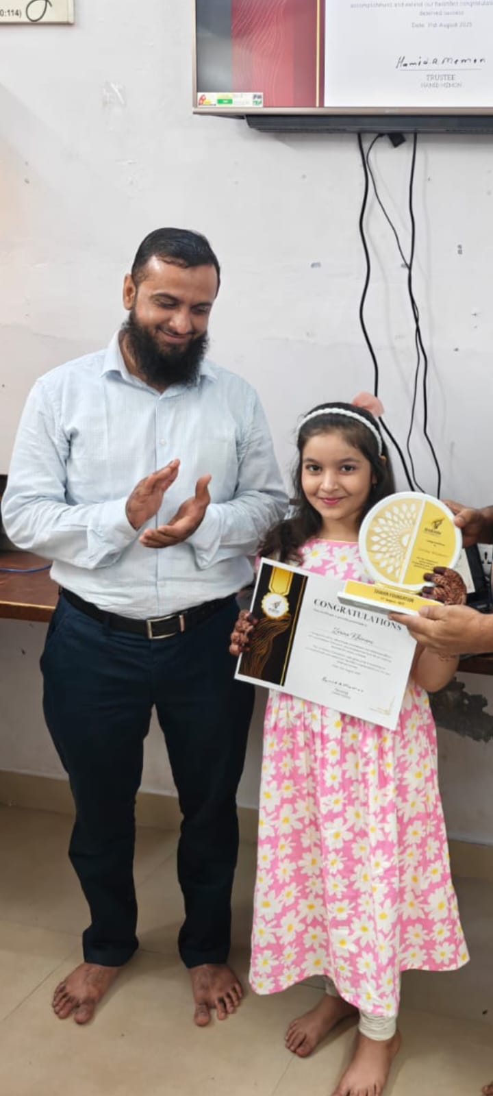Presented to Zarina Khimani in recognition of her great achievement. A token of appreciation for her dedication and success.