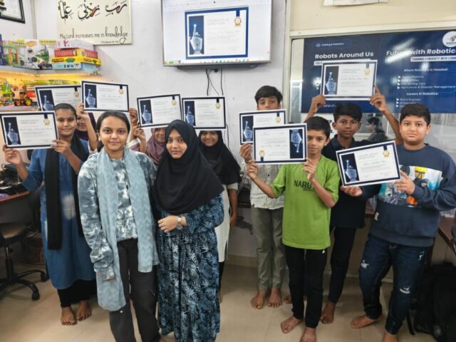 A special ceremony to honor students of Computer Class and Robotics with certificates. Celebrating their hard work and achievements at B.H. Vatva, D.L.”